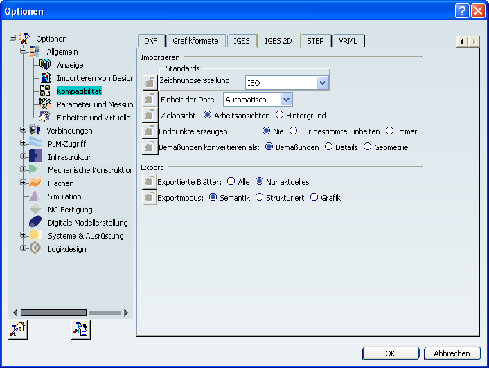 Um den vollen Funktionsumfang der Software infra - CONVERT nutzen zu können müssen Sie folgende Einstellungen in Ihrem CATIA V5 System vornehmen: