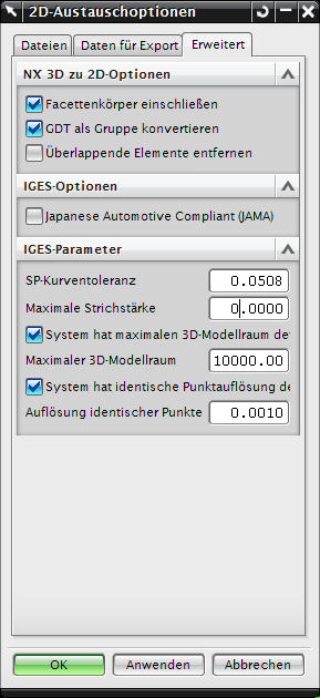 Empfehlungen für den Export von CAD Zeichnungen aus Siemens / Unigraphics NX 6