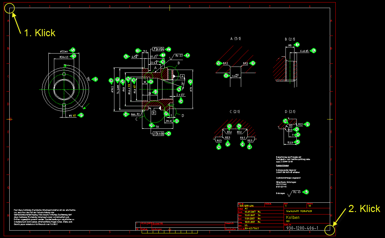 Der Zeichnungsrahmen wird in zwei Schritten festgelegt: