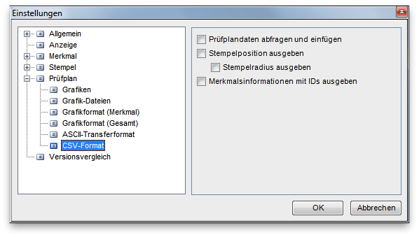 Diese Optionen dienen zur Anpassung des Q-DAS ASCII Transferformats.