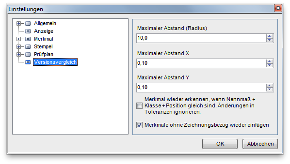 - Maximaler Abstand X: Diese Option legt den maximalen Abstand in X-Richtung fest, in dem sich das gleiche Merkmal von einer Zeichnungsrevision zur nächsten bewegen darf.