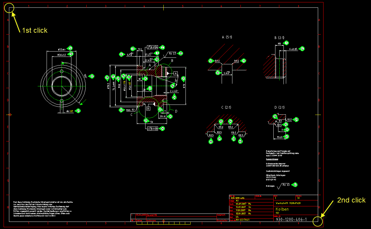- via Define drawing frame... in the Extras menu